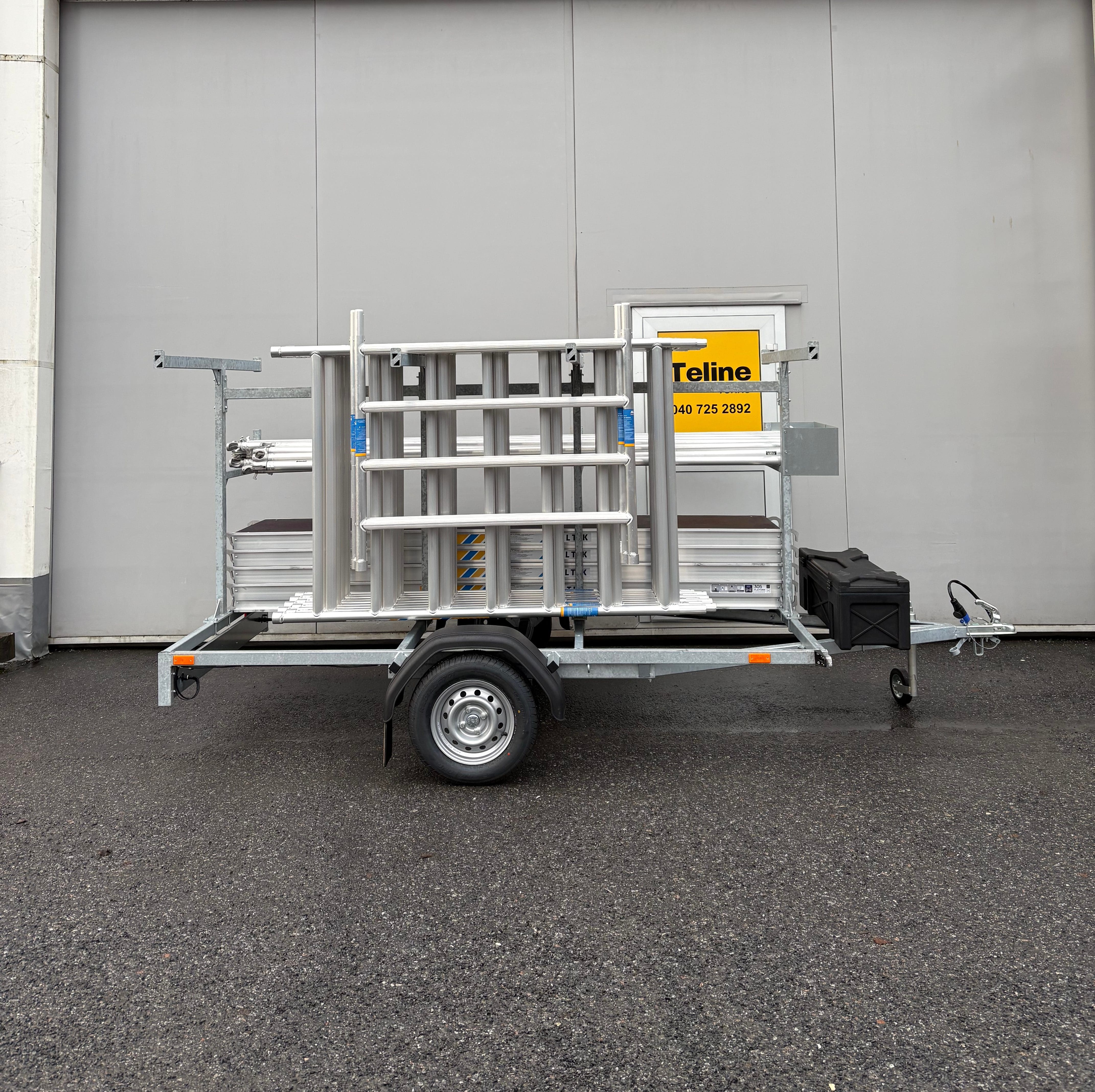 ALTIK ja ASC rakennustelineille suunniteltu telineperäkärry. Suunniteltu 305cm tasopituuden telineille, yli 500kg kantavuudella.
